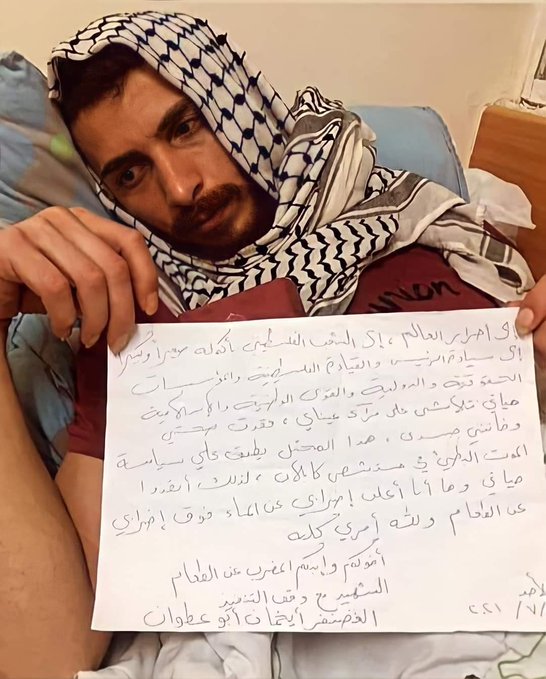 ووفقاً لما أفادت به هيئة شؤون الأسرى والمحررين فإن المعتقل (أبو عطوان) يقبع في مستشفى "كابلان" الاحتلالي، وهو يعاني من نقص حاد في كمية السوائل في جسمه، وقد صرح الأطباء أن (أبو عطوان) يواجه ثلاثة احتمالات خطيرة، وهي: (خطر الوفاة المفاجئة، إصابته بالشلل أو إصابته بمشكلة صحية مزمنة).