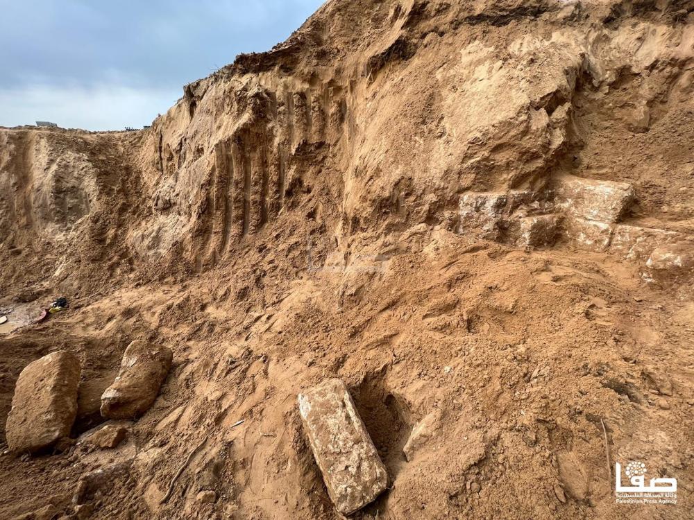 أظهرت صور ومقاطع فيديو التقطها نشطاء في شمال غرب غزة، ويجري تداولها على مواقع التواصل الاجتماعي، وجود قطع حجرية (جدران وأعمدة مطمورة وبقايا أغطية توابيت) يُرجَّح أنها أثرية وتعود لمقبرة ملكية رومانية يعود تاريخها لحوالي ألفي عام.