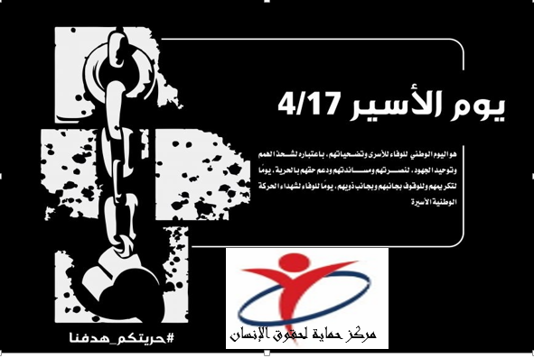 يوافق السابع عشر من إبريل/نيسان من كل عام " يوم الأسير الفلسطيني " تمر هذه الذكرى ولا زال يقبع في سجون الاحتلال الإسرائيلي أكثر من 7000 آلاف من الأسرى الفلسطينيين بينهم أكثر من 1700يعانون من أمراض مختلفة تعود أسبابها لظروف الاحتجاز الصعبة والمعاملة السيئة وسوء التغذية، والأخطر أن من بينهم عشرات الأسرى ممن يعانون من أمراض مزمنة كالسرطان والقلب والكلى ودون أدنى اهتمام ، وقد أزدادت وتيرة تلك الممارسات بحق الأسرى منذ اندلاع إنتفاضة الأقصى مطلع العام 2000 ، حيث انتهجت سلطات الاحتلال سياسة منع الاهالي من زيارة أبنائهم الاسرى ، وطرأ تراجع ملحوظ على شروط حياة الأسرى داخل السجون مثل الخدمات الطبية والعلاجية وتوفير الاحتياجات من مأكل وملبس وأقدمت إدارة مصلحة السجون على سحب العديد من الانجازات وعاودت تطبيق سياسة العزل الإنفرادي وتبجحت في معاملة الأسرى من النساء و القاصرين، وعادت أطقم التحقيق الاسرائيلية الى استخدام التعذيب على نطاق واسع، الأمر الذي يعتبر مخالفة واضحة لكافة الأعراف والمواثيق الدولية. إن مركز حماية لحقوق الإنسان يحذر من امكانية تدهور الأوضاع في سجون الاحتلال يدعو إلى تكاتف وتوحيد كل الجهود من كافة الجهات التي تعنى بقضية الأسرى والمعتقلين الفلسطينيين في سجون الاحتلال الإسرائيلي وذلك عبر ايجاد آلية تسعى الى: