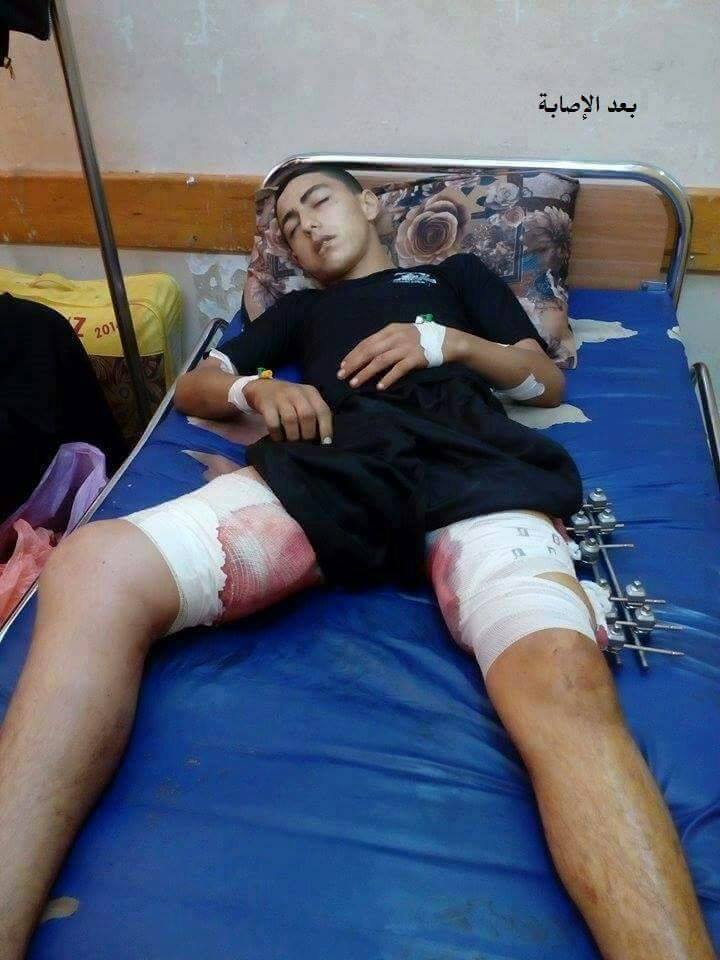 ووفقاً لمتابعة مركز حماية فقد أصيب "يوسف" بطلقتان عيار "250 مل"، نقل على أثرها لمستشفى شهداء الأقصى بمنطقة دير البلح ، حيث أجريت له عمليات طارئة إثر تعرض عظام ساقه الأيسر للكسر والتفتت، فيما عانى في اليمنى من نزيف داخلي حاد بعد قطع إحدى الأوردة، وهذا ما يعود لنوعية الطلقة النارية التي استخدمها الاحتلال ، ولخطورة حالته الصحية جرى تحويله إلى العناية المكثفة في مستشفى الشفاء بمدينة غزة.