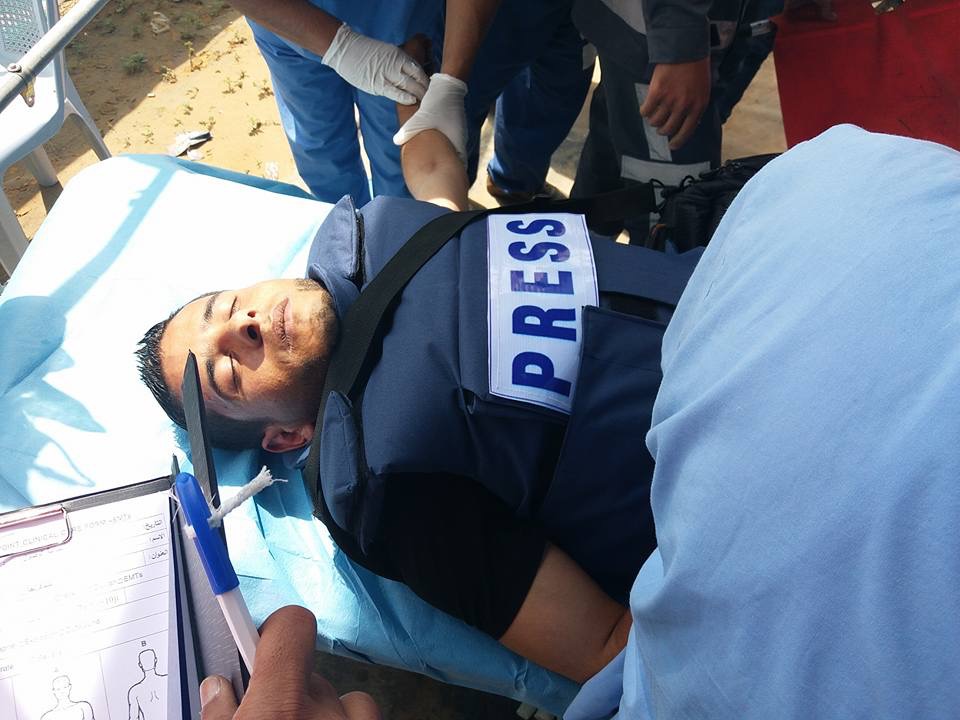 وحسب متابعة مركز حماية لحقوق الإنسان ، فإن قوات الإحتلال الإسرائيلي المتمركزة خلف الجدار الفاصل ، أطلقت النار الحي وبشكل متعمد تجاه الصحفيين، مما أدى إلى إصابة أربع صحفيين حتى اللحظة ، هم الصحفي عمر حمدان ( مصور التلفزيون الجزائري ) والصحفي فرحان أبو حدايد ، والصحفي محمد الدويك ( مراسل وكالة إتحاد برس ) والصحفي عبد الله الشوربجي .
