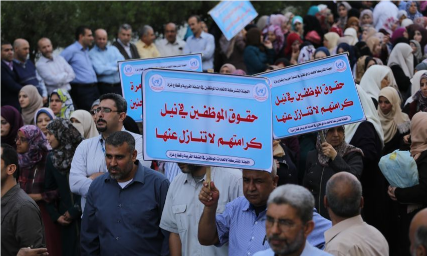 مركز حماية لحقوق الإنسان، إذ يجدد إدانته واستنكاره لإجراءت وكالة غوث وتشغيل اللاجئين الأخيرة، فإنه يعتبر ما تقوم به الوكالة من إجراءات بحق موظفيها والمستفدين من خدماتها "اللاجئين الفلسطينيين" تنصل بشكل واضح وممنهج من التزاماتها القانونية تجاه موظفيها، بالإضافة لتخليها عن المسؤولية القانونية والإنسانية تجاه واجباتها المنصوص عليها وفق القرارات والمواثيق الأممية، وبدوره يحذر المركز من خضوع الوكالة للحسابات السياسية المتنكرة للحق الفلسطيني وعلى رأسها السياسة الامريكية الداعمة للاحتلال، ويؤكد على أهمية الدور الإنساني والإغاثي المنوط بها، ويدعوها إلى إعادة النظر في إجراءاتها الأخير، ويطالب بتشكيل لجنة تحقيق في حادثة الإعتداء على المعتصمين السلميين، ومعاقبة الفاعلين، كما ويدعو المجتمع الدولي بالوفاء بالتزاماته القانونية والأخلاقية تجاه الشعب الفلسطيني ، والعمل الفوري على تقديم كافة أشكال الدعم والمساعدة لحمايته وضمان تمتعه بحقوقه المشروعة.