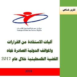 "حماية" يطالب بوضع آلية منظمة للإستفادة من عشرات القرارت والمواقف الصادرة تجاه القضية الفلسطينية في ظل متابعة مركز حماية لحقوق الإنسان ...