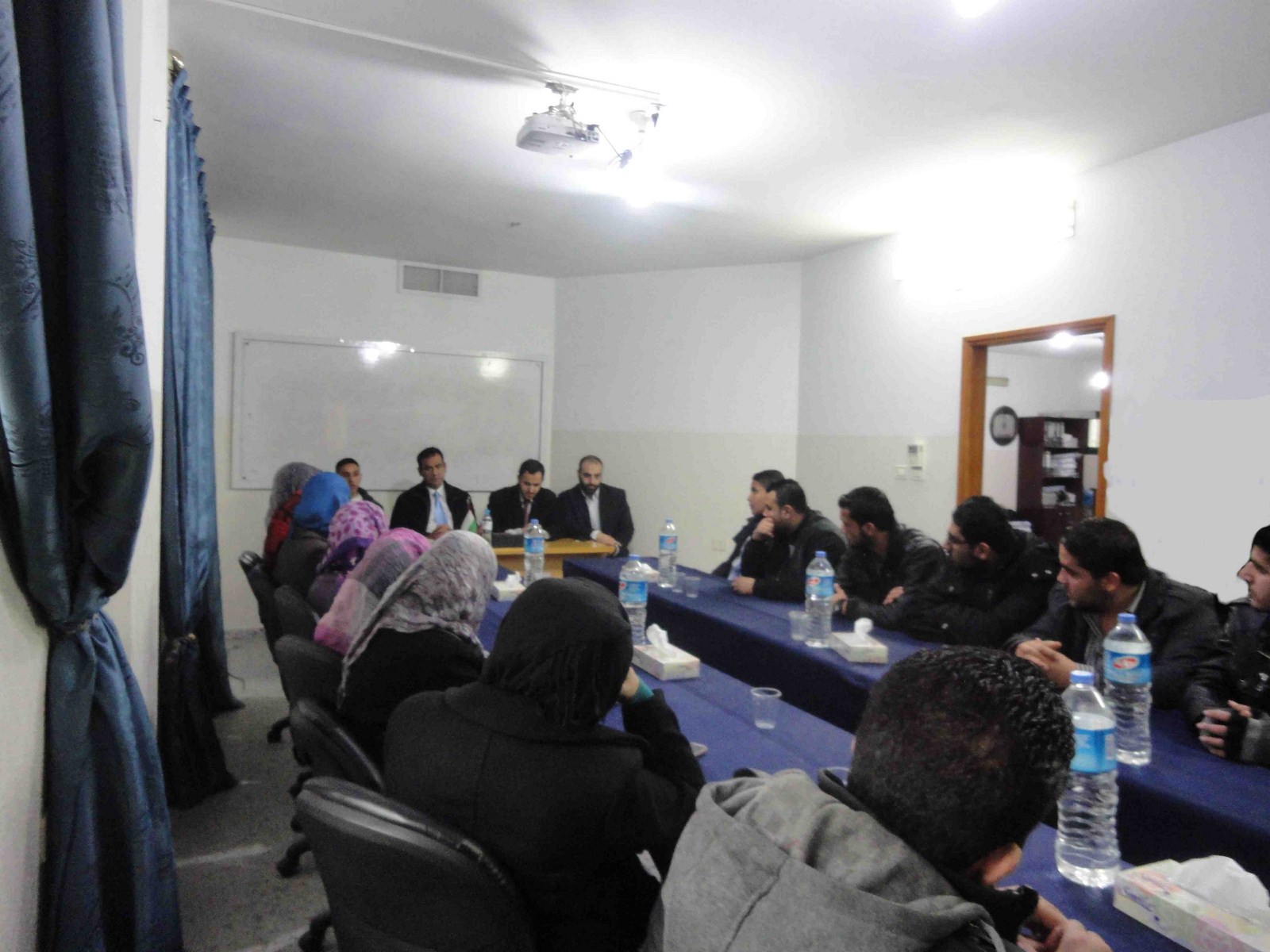 في بداية اللقاء تحدث أ. أبو سعده مرحباً بالحضور، ومثنياً على جهود وحدة التدريب والتطوير، مؤكدا أن هذه الدورة تأتي ضمن برنامج وخطة مركز حماية لحقوق الإنسان في سبيل تأهيل طلبة القانون، موضحاً أهمية مضمون الدورة لطلبة القانون ، وبدوره شكر أ. أبو غولة ممثلاً عن أعضاء النادي مركز حماية لحقوق الإنسان على هذه الدورة والذي اعتبره البيت الثاني لطبة النادي متمنياً أن يلقوا الفائدة المرجوة.